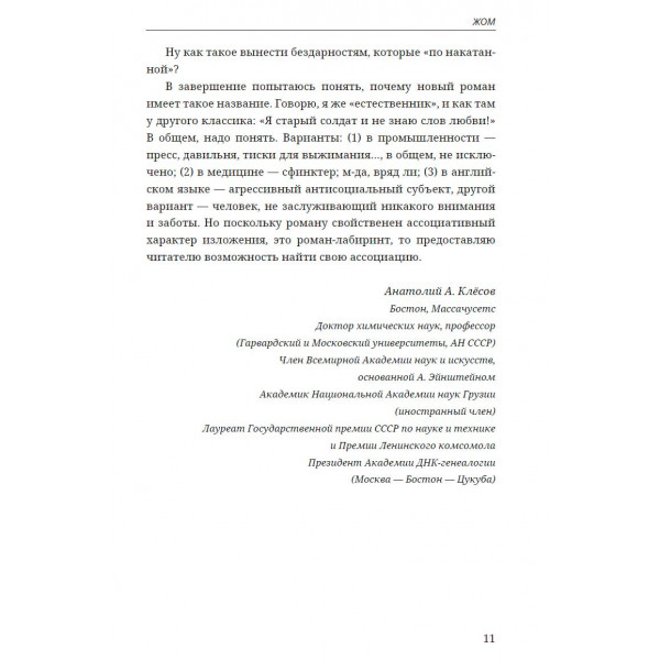 Литература русского зарубежья всегда представляла большой интерес для читающей публики. Писатели, в силу тех или иных причин покинувшие Россию, не прерывали духовной связи со своей родиной. В их произведениях, даже в тех, где действие происходит далеко от родных мест, чувствуются отголоски великой русской литературы, абсолютно естественно существующей в обширном мировом контексте. Философ, литературовед и писатель Анатолий Ливри — представитель самой последней, четвёртой эмиграционной волны, он уехал из России в 1991 году. Его сравнивают с Владимиром Набоковым и Фридрихом Ницше, им восхищаются и его ненавидят. Дерзкий стиль его повествования никого не оставляет равнодушным, оригинальные сюжеты дают пищу для ума, а неоднозначные герои притягивают своей самобытностью. В настоящем издании представлены три произведения автора, написанные им в разные годы: "Глаза" (1999), "ЖОМ" (2002–2017), "Минута молчания" (2009).