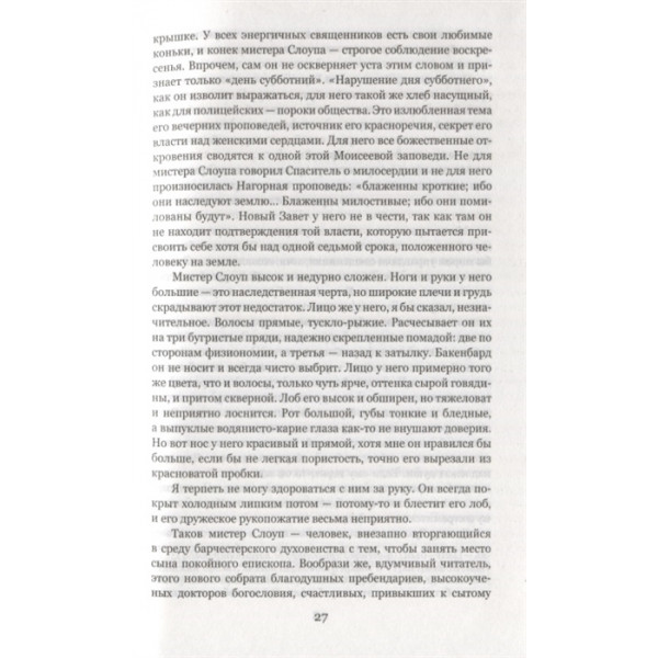 "Энтони Троллоп (1815—1882) принадлежит к числу великих викторианских писателей, а его книги — лучшие образцы из произведений английских авторов. "Троллоп убивает меня своим мастерством", — писал о нем в дневнике Лев Толстой.