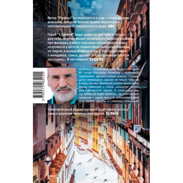 Роман Фернандо Арамбуру “Стрижи” увидел свет через пять лет после его знаменитой “Родины”, переведенной на 34 языка и принесшей автору мировую славу. К удивлению многих, на сей раз писатель резко сменил не только тему, но и стиль письма. Герой “Стрижей”, пятидесятилетний преподаватель философии Тони, вроде бы без очевидной причины решает покончить с собой. И назначает точную дату собственной смерти, дав себе год на завершение дел. Тогда же он начинает вести дневник, где каждый вечер описывает события минувшего дня, а также восстанавливает историю своей жизни. Цель дневника — разобраться в себе самом и понять, почему ему так бесповоротно расхотелось оставаться на этой земле. Дневник предельно откровенен, в нем Тони без стеснения выплескивает самые потаенные чувства, вскрывает мотивы самых неприглядных поступков и размышляет о природе счастья, любви, дружбы и семейных отношений.