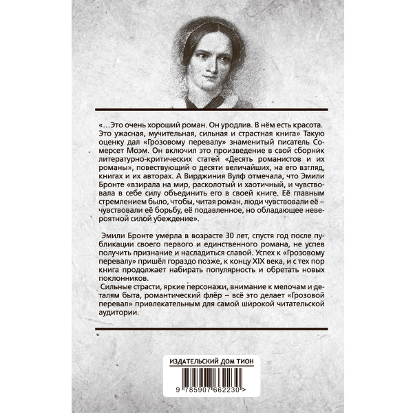 Эмили Бронте умерла в возрасте 30 лет, спустя год после публикации своего первого и единственного романа, не успев получить признание и насладиться славой. Успех к "Грозовому перевалу" пришёл гораздо позже, к концу XIX века, и с тех пор книга продолжает набирать популярность и обретать новых поклонников.