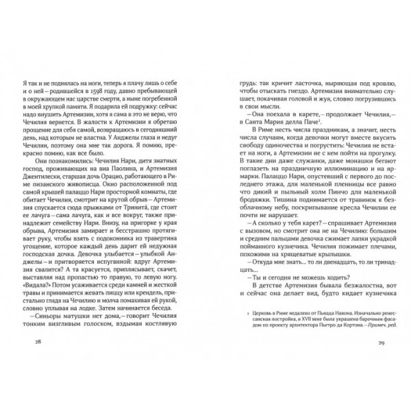 Роман Анны Банти об Артемизии Джентилески, изданный в 1947 году, вернул общественный интерес к выдающейся итальянской художнице, последовательнице Караваджо. В книге мы не найдем документальной точности и достоверности в изложении событий жизни героини, сумевшей драматические эпизоды собственной биографии переплавить в образы искусства. Это, скорее, попытка воссоздать внутренний мир столь яркой личности и исторический контекст, в котором она могла появиться. Заказчиками и покровителями Артемизии были европейские монахи, учениками — художники-мужчины, признавшие ее безусловный приоритет в живописи. Талант и сила духа художницы XVII века, во многом опередившей свое время, производят впечатление и в наши дни.