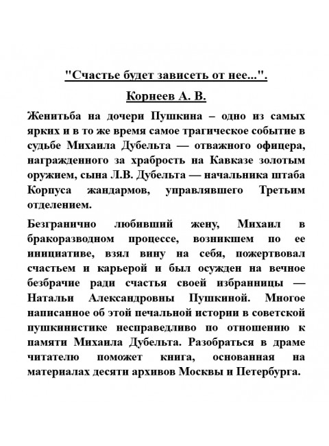 "Счастье будет зависеть от нее...". Корнеев А.В.